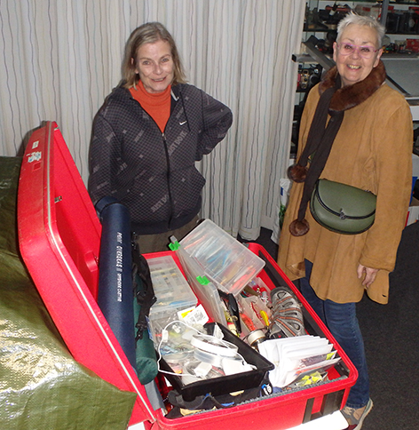 We hebben er zin an en na wat te hebben gegeten gaan we de hengels klaar maken.