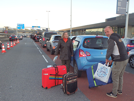 Hier stoppen de bussen allemaal om die roze gevleugelden op de foto te zetten. Dus snuiven wij ook wat cultuur op en toevallig krijg ook zo’n plaatje uit Nederland van Arno die aan het trainen is om de Alp de Huez te beklimmen voor het KWF.