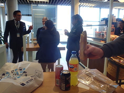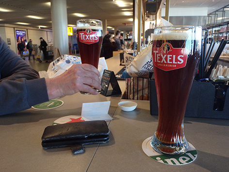 We krijgen trek. We hebben natuurlijk al weer een paar uurtjes er op zitten. Wat willen jullie eten vraagt de serveerster. Het zijn allemaal studenten net geslaagd van bijvoorbeeld de hotelvakschool en komen dan hier “stage” lopen. Die zijn hier dan een paar weken maar er zijn er ook die een half jaartje het hier proberen uit te zingen. Wat heb je want een kaart heb ik nog niet gezien. Oja haal ik ff. We hebben van alles. Hebben jullie ook een hele vis. Nee dat hebben we dan weer niet zegt ze dan. Doe dan maar iets met garnalen met knoflook boter. Hebben we ook niet zegt ze lachend ik gaat de kaart wel ff halen.