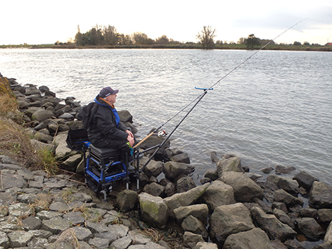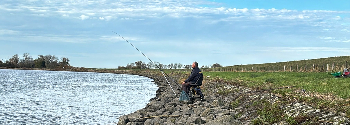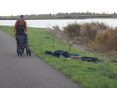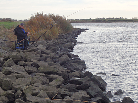 Als ik dan weer terug rijd na op het brede stuk te hebben gekeerd ziet ik zelfs zitjes gemaakt van stenen. Hier zullen ze vaker vissen dus. En dat is goed dat er zo nu en dan voer wordt gebracht. Zal er eens met de boot over varen en de bodem en diepte in kaart brengen. Op dit gedeelte aan de overkant en voor de haven de Blienkert zitten we vaak op de predators te vissen. Nu ik dat witvissen leuk gaat vinden met de feeder lijkt me dat een goed idee.