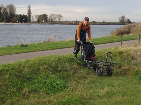 Ik kan na dat ik de zware korf kwijt ben geraakt 40 gram aan de grond houden op 35meter afstand. En voel als ik ophaald dat daar een rand zit het talud waarschijnlijk en daar blijft die mooi liggen. Ik heb eventueel wat saté stokjes bij me en wat elastiekjes voor als het harder gaat stromen.