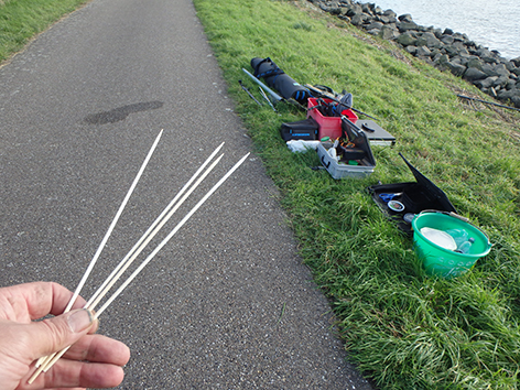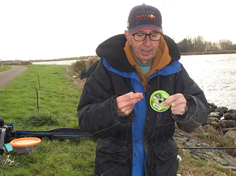 Maar voordat ik klaar ben met opbouwen van de stek moet Joep al twee keer een nieuwe onderlijn er aan knopen.