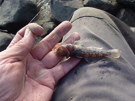 Joep zit uitsluitend met maden en vangt zijn derde visje. Na twee grondels nu een baarsje van dezelfde grote.