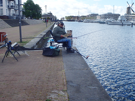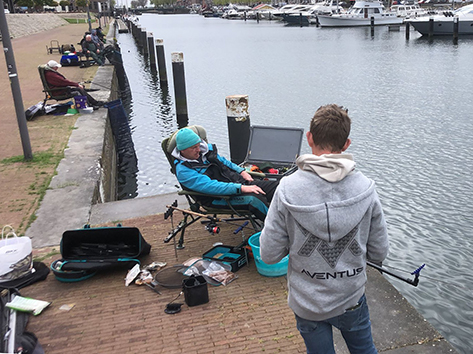 Ik krijg toch meer aanbeten met vissen op driekwart van het kanaal. John wil dat Tri-Cast stokkie wel eventjes aanvoelen. Die komt toch nog even kijken voordat die naar de sportschool in Spijkenisse gaat en op de terugweg komt die toch weer even informeren.