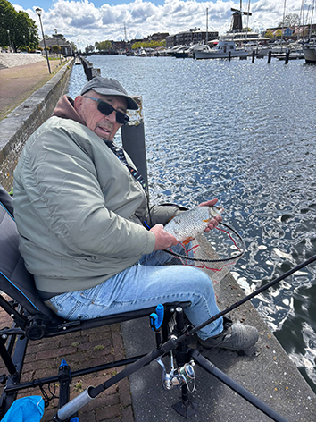 Maar wat Jan allemaal niet vals haakt vandaag is ongelooflijk. Mijn aas ligt plat op de bodem en hoe vaak ik me al niet vergist dat ik denk een aanbeet te hebben. Wat een dikke vissen zitten nu al in het Kanaal door Voorne.