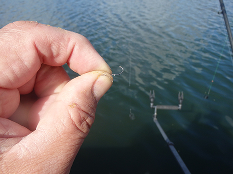 Vroeger viste ik altijd met minimaal hakie 14, en twaalf deed ook mee maar tegenwoordig durf ik nog kleiner te gaan. Dan zitten ze gehaakt in de lip. Net als de hoeven van een paard ik denk niet dat ze er last van hebben als ze zijn terug gezet. Ze rukken aan scherpe mossels, kraken garnalen en kreeftjes. Dat is allemaal scherper dan hakie 16.