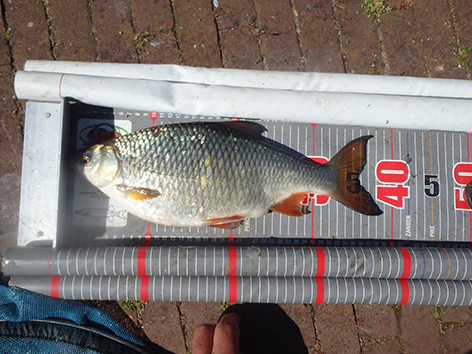 Het eerste uur is het voorns wat de klok slaat naast me op de vaste stok. Bij mij duurt het ook even voordat de vis is gearriveerd. Kleine voorns vinden de stek al wel snel. Misschien lig ik toch te dicht aan de overkant en gaat een paar meter verkassen.