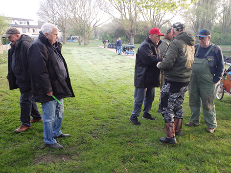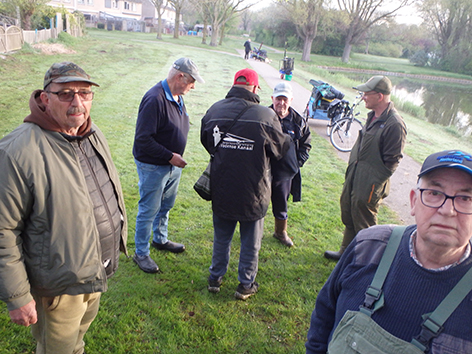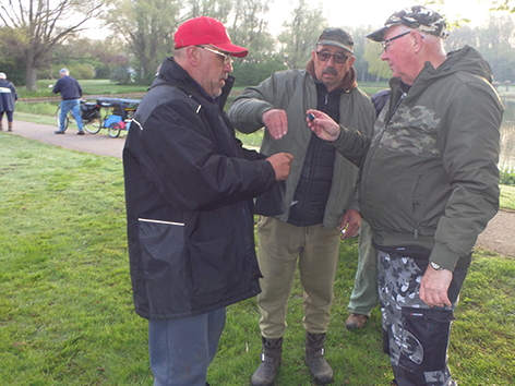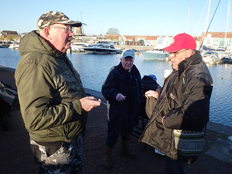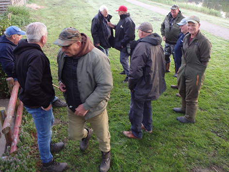 Het loopt niet erg vlot aan deze kant van het parcours. Harry, Kees Ikke en Hans hebben nog niet gereigstreert dan een enkel lijnzwemmer. Dan daar naast John die heeft geregeld een aanbeet maar verspeelt er ook en daarnaas JanJ, Aad en Nuno hebben de puzzel ook nog niet gevonden. Terwijl voor aan er gelijk al goed wordt gevangen.
