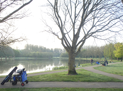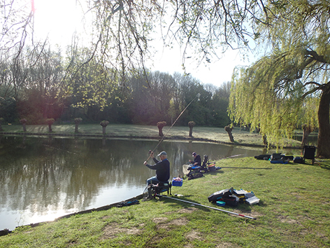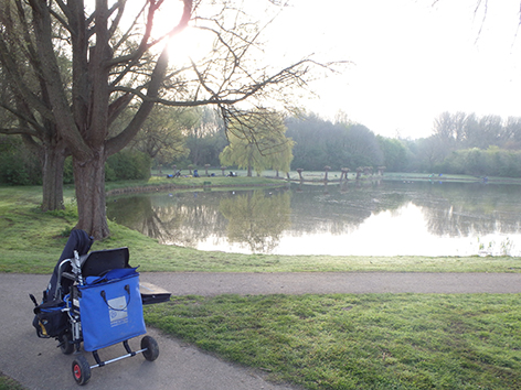 Ik zit zo gek nog niet hier hebben we van de week ook zitten vissen. En daar zit je gelijk in het zonnetje en dat scheelt twee jassen. In de schaduw zitten of al in de zon.