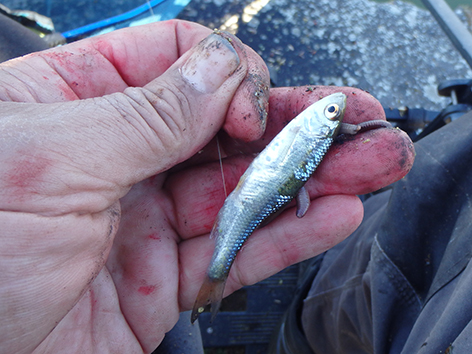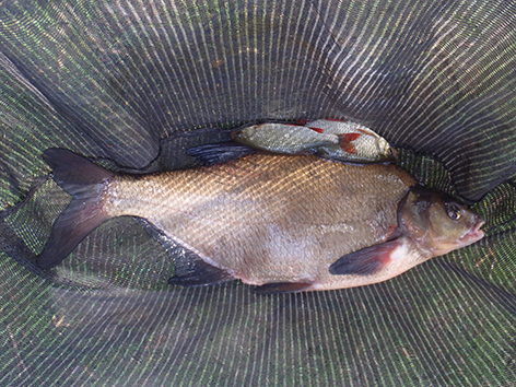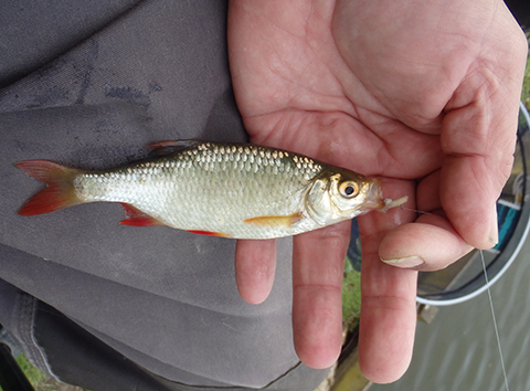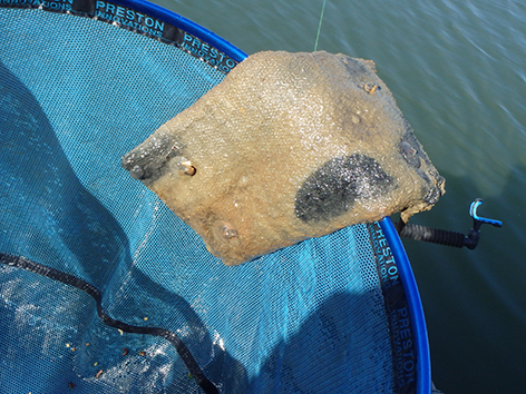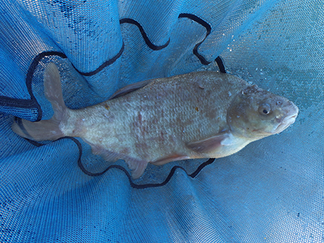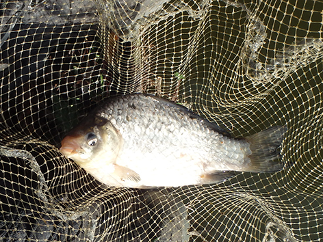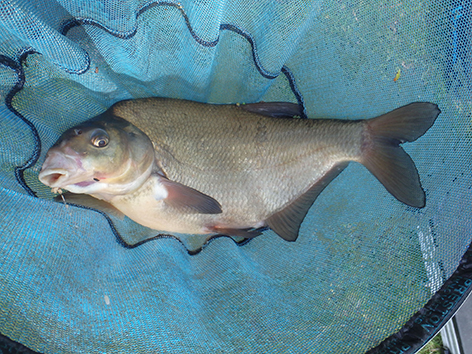 Ik moet wat veranderen en knip wat wormen. Terwijl ze het heel de week op een made en twee casters deden willen ze vandaag misschien wat anders. Mijn tweede worp is een meter uit de voerplek en uit het niets, ik laat het toch maar ff liggen, wil ik weer ophalen om opnieuw beter op de voerstek te gooien en er zit gewicht aan. Wat een mazzel. Toen had er een lichtje moeten gaan branden maar ik gebruik pas sinds deze twee weken casters door het voer heen en aan de haak.