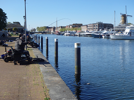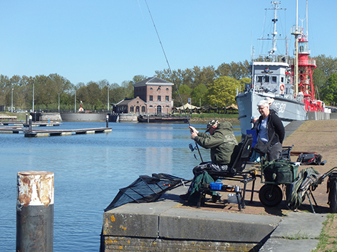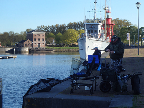 We vangen al de gehele week goed op de Koningskade in de Vesting van Hellevoetsluis. Al de gehele week is het goed brasems vangen ook in het Kanaal door Voorne maar hier kan ook gemakkelijk vanuit de auto bij het water komen en je zit lekker uit de wind door de omgeving. Want het is nog zachtjes uitgedrukt frisjes met die Noorden en Oosten wind. Mooi vlak vanaf de kade dus wel een lang verzamelnetje meenemen en een landingsnet steeltje van dik drie meter is ook geen overbodige luxe.