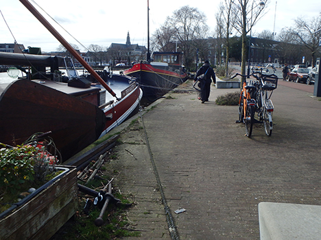 Wij gaan ook verder zoeken en terwijl we richting de volgende brug gaan waar we net over heen zijn gekomen toen was daar nog niemand. Maar de hengelaars van net in die camouflage kleding gingen er al lopende heen. Dan besluiten we gewoon af te slaan de wijk in.
