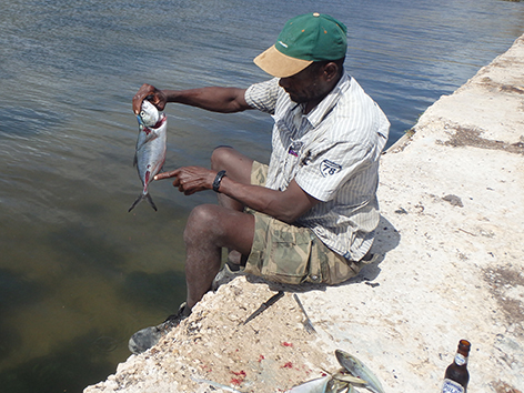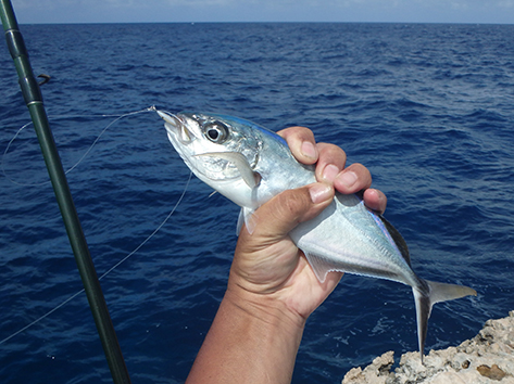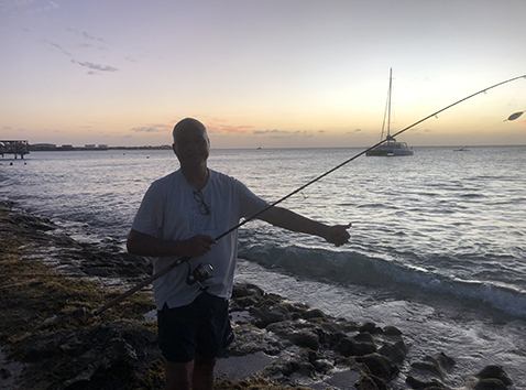 Marco vist weer met een dikke popper proberen er een liefst grote Tarpon te vangen. Ik gaat met het delta visje proberen wat te vangen voor op de BBQ. In een uurtje heb ik er al genoeg gevangen en de kleinste kunnen weer terug. Wel bijten de gepen tussen door het delta visje aan gort.