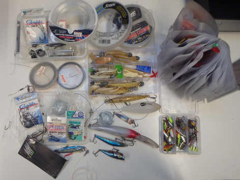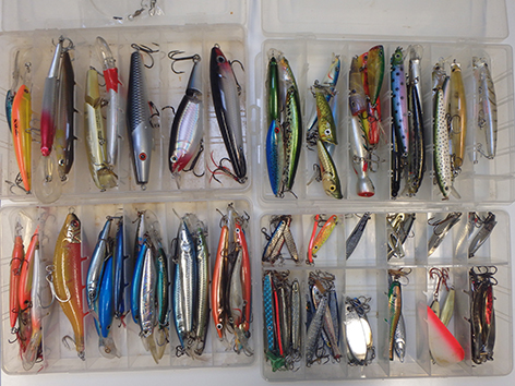 Twee dozen met pluggen diep en ondiep lopend heb ik helemaal niet gebruikt. Maar als je thuis bent denk je ik pak de gehele doos maar uity de boot want het weegt natuurlijk niets vergeleken bij die shads en dropshot met loodkopjes en natuurlijk de bodem visserij.
