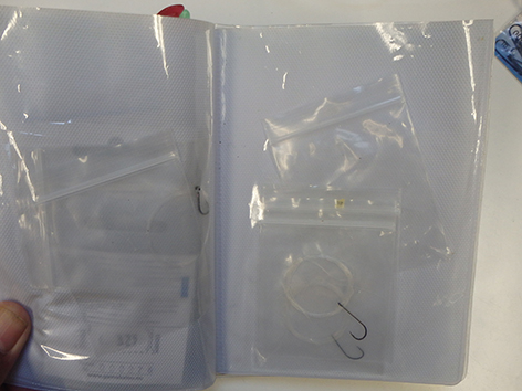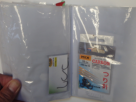 Nu we het toch over het materiaal hebben. Ik heb gewoon mijn dropshot mapje meegenomen en aangevuld met wat haken in alle maten en soorten. Meer om te peuteren in een haven ofzo of om aasvisjes te vangen. Uiteindelijk visten we op die barracuda’s met aasvissen dik in de veertig centimeter. Maar dat voor laterss.