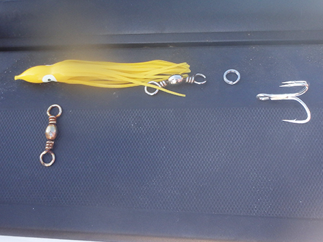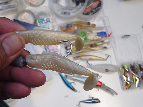 Nu we het toch hebben over het meegenomen materiaal.En heel veel haken.Dropshot lijntjes.Gokte op de lichte kleuren.