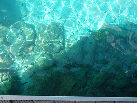 11.48 uur. Je zit hier werkelijk bovenop de vissen.