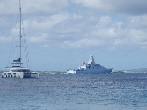 De Nederlandse marine is dicht bij. We weten dan nog niet van de perikelen in Venezuela met Trump.We worden dus goed beschermd hier.