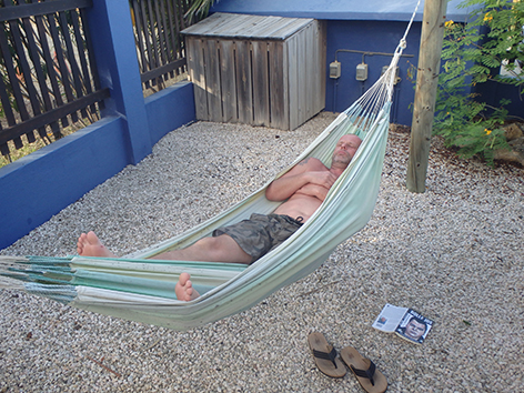 Dat langer blijven is niet zo erg maar die onzekerheid. Gaat ik die koffer weer uitpakken en mijn vis spullen in orde maken. Ik heb geen vervoer meer en naar Kralendijk en fietsen op de fiets van Maurits met deze warmte is geen optie. Aan het strand in de schaduw dan maar mensen kijken.
