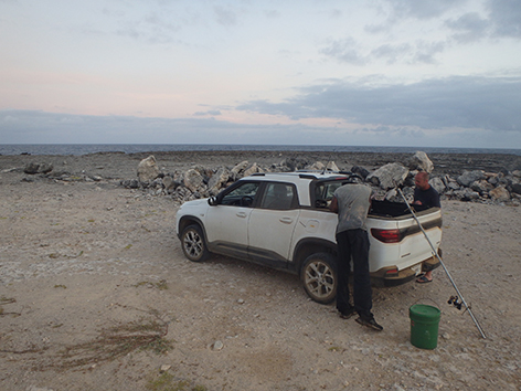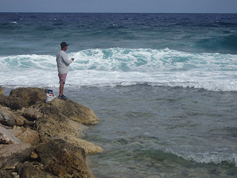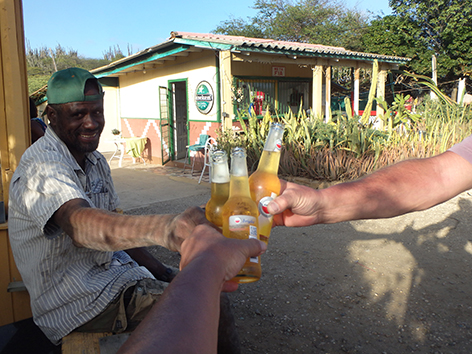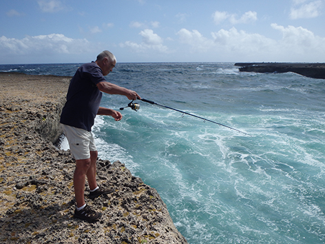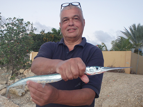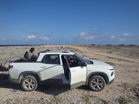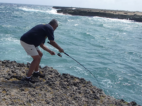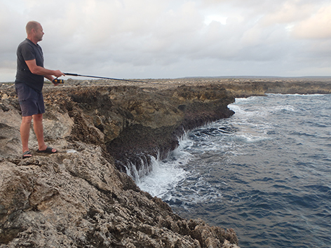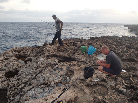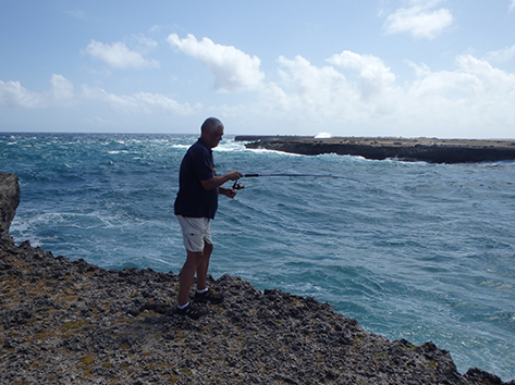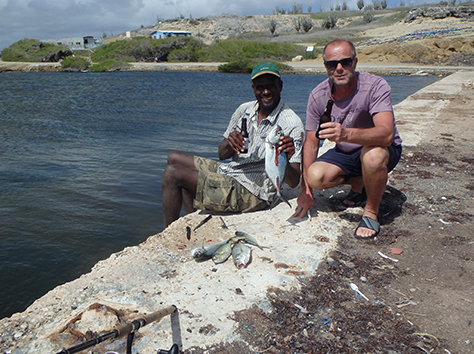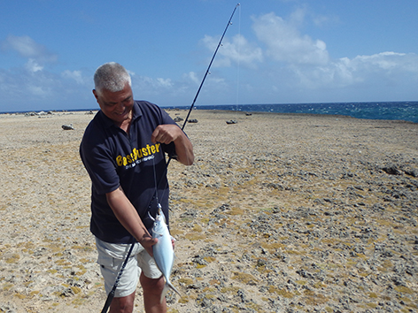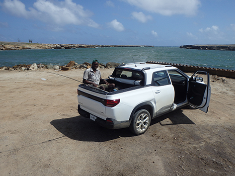 11.24 uur. We krijgen een tip in de hengelsportzaak van een Nederlander die helpt vertalen in het Papiamento.