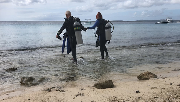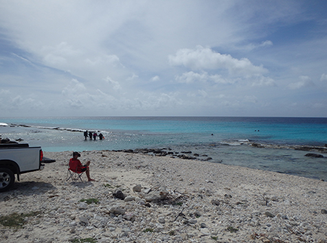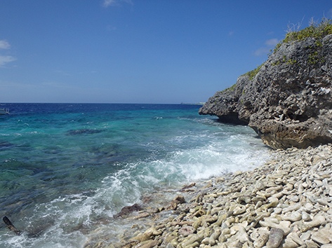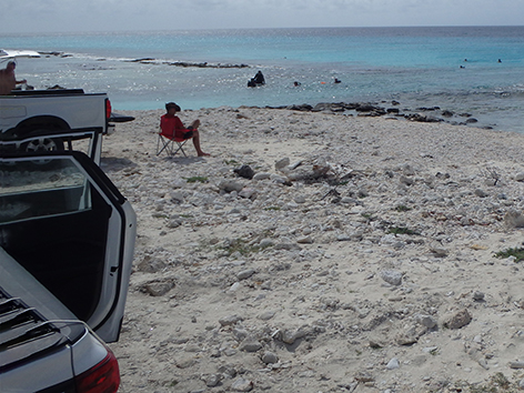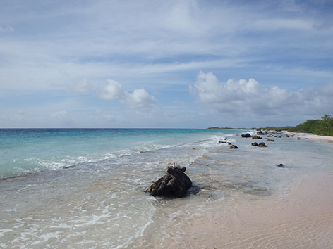 Aan het strand bij Lac Bay was het daar prima te naggelen.