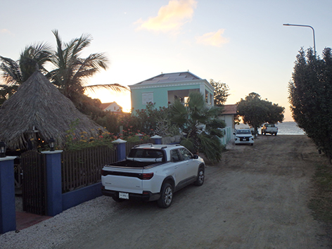 Net ontbeten en het is alweer bijna negen uur. Eerst even even douchen en wachten op Matheu. Ik zag dat het huisje echt aan het water leeg was. Misschien kan ik daar in vandaag. Eerst de eigenaar vinden. Ik heb geen zin om met mijn spullen naar Kralendijk te slepen.n. Tis voor het eerst dat ik geroosterd brood eet met aardbeien jam. Wat is dat zoet zeg. Dan maar kaas op en warme boterham uit de rooster.