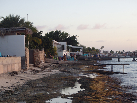 Ik zou wel wat lusten. Dus wandel ik naar de buren om te zien hoe laat die open gaan. Mijn koffers staan nu in het kantoor van Blanchi Koko want ze zijn mijn huisje schoon en klaar aan het maken voor de volgende bewoners. Maar mijn Canadese buren weten me te vertellen dat die Sebastian’s pas om half zes open gaat. Ik ben dorstig geworden dus gaat maar op zoek naar wat te drinken.