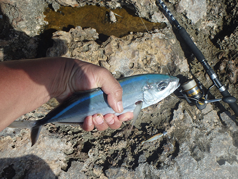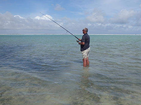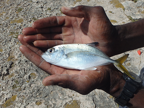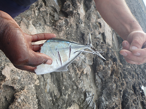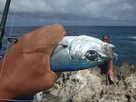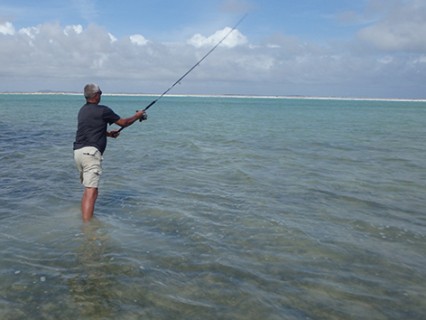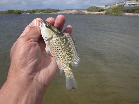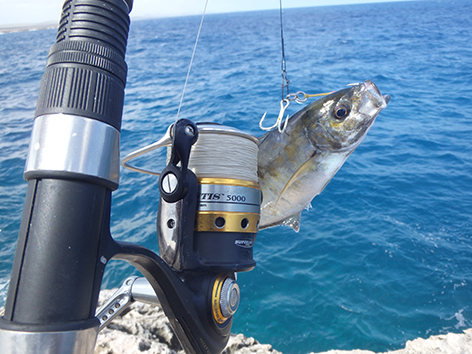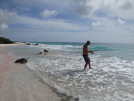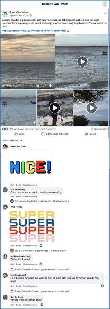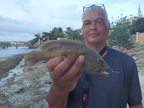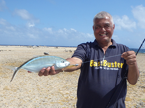 De volgende vis kan ik wel netten. Dat is een bone vis zegt Marco dan die heb ik nog niet gevangen in al die jaren dat ik hier kom. Ik ben er reuze blij mee en wat een krachtpatsers zijn dat dan. Heerlijk.