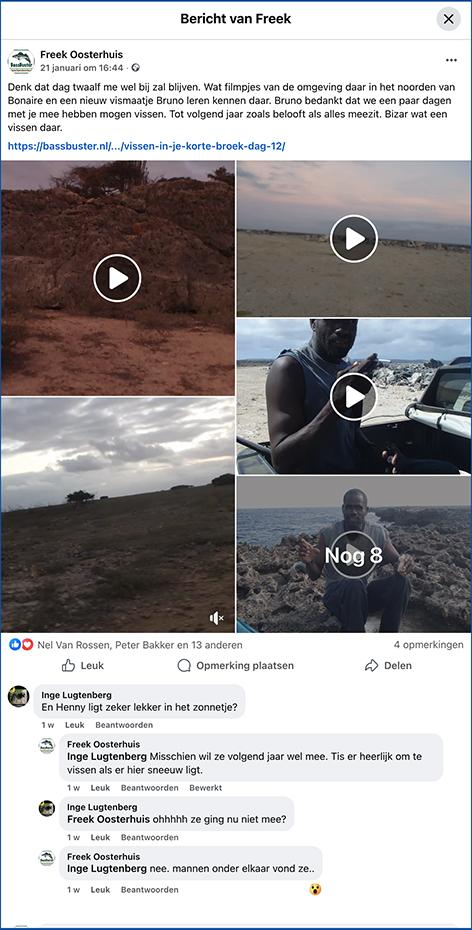 Gister al de hengels en andere vis spullen opgeruimd en daar zal ik spijt van krijgen. Want om 13.22 uur krijg ik door dat mijn vlucht is vijf uur is verlaat. Maar het toestel staat nog in Holland vast gevroren op de baan hoor ik dan van Annemiek en Maurits. Die zal wel heel laat aankomen dan hier op Bonaire.