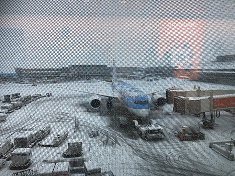 Ik ben nog in mijn 39 graden kloffie.Nu maar hopen dat we op Schiphol kunnen landen.