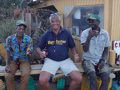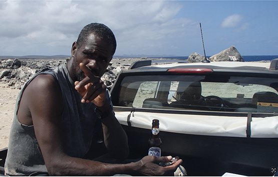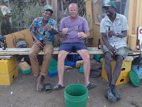 We zijn een half uurtje later op de stek bij het haventje van Sorobon en Sorobon Beach 28 december 2025 dan vorige keren. De man die hier waarschijnlijk elke dag zit is er al. Nu niet samen met zijn vrouw maar een man.