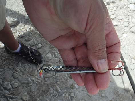 Nog één dropshot loodje over na de reis. Meer van meenemen dus.Toch nog wat haken over gehouden.Hier heb je wel wat dikker Fluor Carbon nodig.Ook de glitters deden het niet. In dat heldere water hadden ze het gelijk door.Met dit spul kon ik dus niets vangen op dag 9 in die scholen vis.