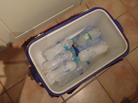 Heb ik nog dertig eieren, brood, boter, cola flessen, blikjes tonijn, een monsterpak plakjes Gouda kaas, water en natuurlijk bier etc. over. De schoonmakers hoeven geen boodschappen deze week te halen.