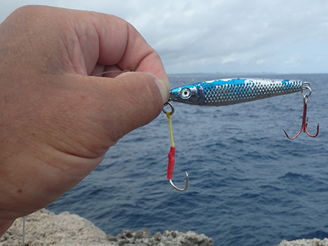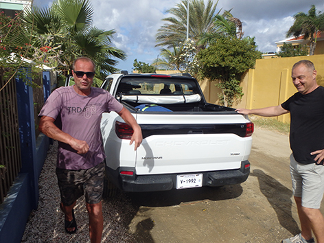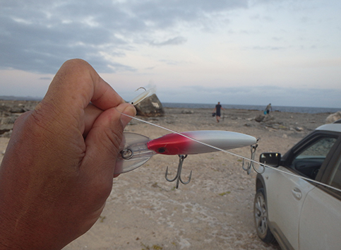 We gaan naar de enigste hengelsportzaak om eens er te kijken. Die zit bij Budget Marine in het pand op Kaya Neerlandia 21 Kralendijk, Bonaire. Vorige keer was die gesloten op zaterdagmiddag. Die is alleen maar morgens open. Ik heb meer pluggen bij me dan er daar hangen. Wel heb ik de goede meegenomen ziet ik aan de hangende kleuren. Wat raar maar geen pilkers. Maar die heb ik genoeg bij me.