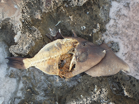Die raken we niet meer aan. Wat een stank komt daar vanaf. Vanaf nu letten we beter op de houdbaarheid datum. Zelfs de pelikaan haalt er zijn neus voor op.