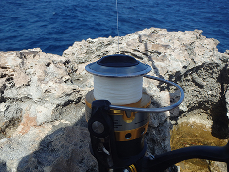 Weer gooi ik in en nu het wat lichter is zegt Marco die inmiddels naast me is komen zitten is dat niet wat te dicht bij die boei. Twee meter er vandaag ik laat het eventjes zo. En jawel hoor nu staat de slip wat vaster en ik houd de lijn voor de molen in de hand met een dik metertje slek. De lijn schiet door het water en zo uit mijn hand en direct staat de hengel hoepeltje rond. Wat een sensatie. De vis en dat ziet ik aan de lijn die door het water heen klieft sprint naar de witte bolder en ik zit vast. Ik houd de lijn strak maar de vis blijft trekken. Die zit er nog aan dus. Wat meer slek op de lijn maar het lijkt of dat de vis dezelfde rondje s om de ankerlijn maakt. Dan een ferme ruk, nee dreun is betert gezegd want die witte feder ziet ik zelfs even duiken en ik heb niets meer waar ik me zorgen over hoeft te maken. Ships. Zie nu wel in dat als je grote vissen wilt vangen je met levend aas moet vissen en dat mag gewoon hier net als vroeger in Nederland als kind zijnde. Wat was dat een genot je snoek of snoekbaars dobber te zien onder schieten