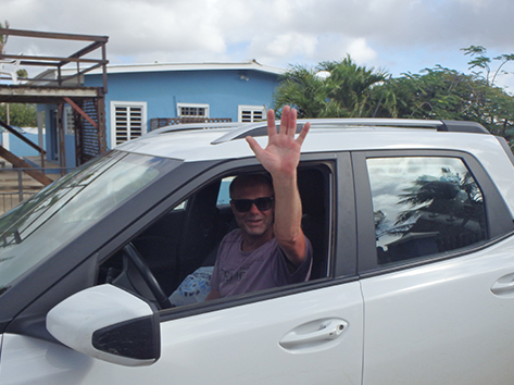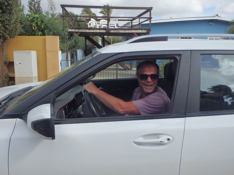 Maurits bedankt voor de goed zorgen. Die brengt me naar het vliegveld.