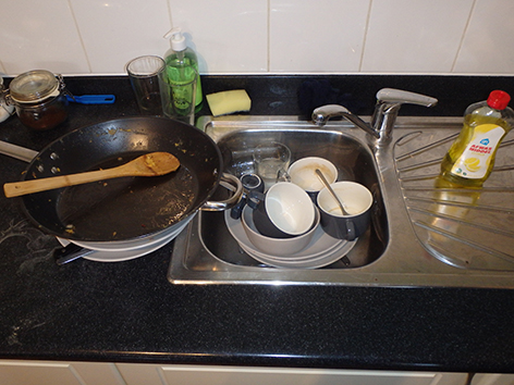 18.54 uur. Schoonmaken terwijl Marco de BBQ aansteekt.