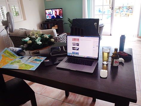 Het is een beetje uitzingen van de tijd maar zo erg is dat niet hier in het zonnetje terwijl ze thuis in de sneeuw en ijzel zitten te kleumen.