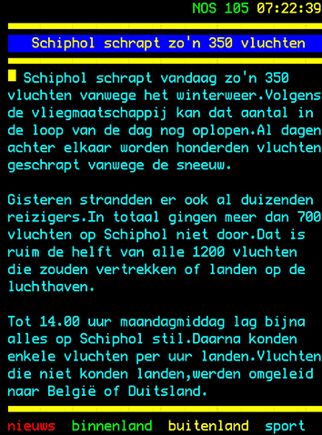 Het thuisfront is ongeruster. Zeker als ik zeg dat de vlucht van eergister is geland op Oostende. Maar het kan zomaar Frankfurt, Köln of Brussel worden. En zonder winterbanden en de treinen rijden niet is dat een probleempje.